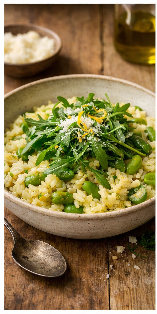 Lentegroente risotto met jonge tuinbonen en rucola
